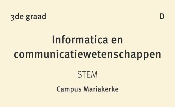 3de graad – 09 – Informatica en communicatiewetenschappen By Steve WithouckDerde graad, Derde graad wetenschappen, Wetenschappen studieaanbod > derde graad > Informatica en communicatiewetenschappen Complexe vraagstukken oplossen. Ik word ingenieur. Je hebt een gezonde dosis interesse in technologie en innovatie? Je bent in staat om complexe...Read More 22/03/2025 Love0